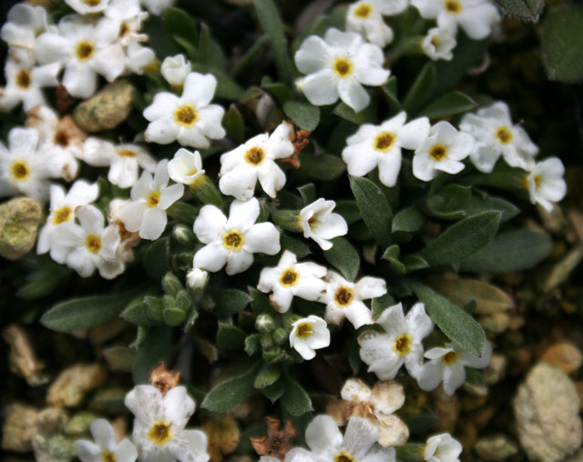 白花ワスレナグサ 【076-005】 ムラサキ 2019.10.26 清楚な白い花色の選抜品種。 開花期 4-5月 冬季 落葉 日当たり 明るい日陰 耐寒性 強 水やり 普通 施肥 春・秋に油粕肥料、生育時に有機液肥を2週間に1回程度 用土 山野草の土/基本培養土