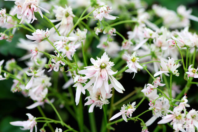 淡いピンク色の多弁八重咲品種。大小様々な花弁が混在する面白い咲き方。