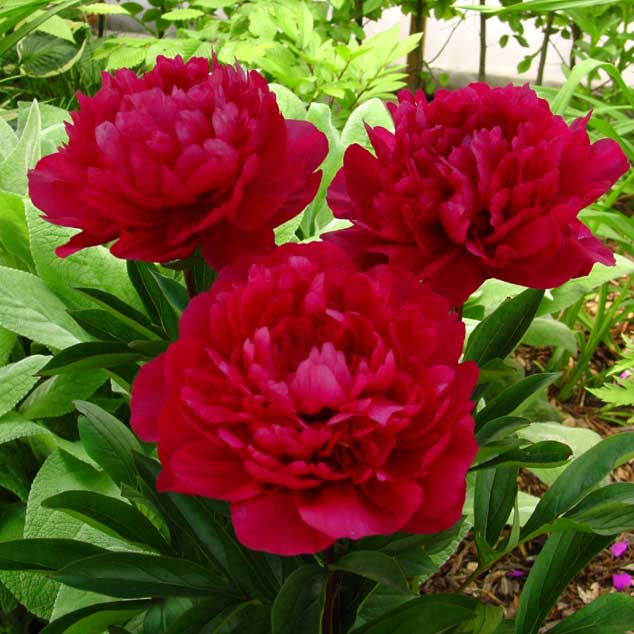 Paeonia x Lactifolia ‘Red Magic’ 草丈75cm、鮮やかな濃赤の八重咲品種。花つきがよく、香りもよい切花向きの品種。