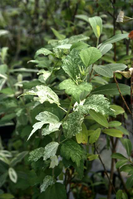 白虎斑ムクゲ 【402-003】 アオイ 2019.10.26 夏に白い虎斑をあらわす。 開花期 7-9月 冬季 落葉 日当たり 日向 耐寒性 中 水やり 普通 施肥 春・秋に油粕肥料、生育時に有機液肥を2週間に1回程度 用土 基本培養土/山野草の土