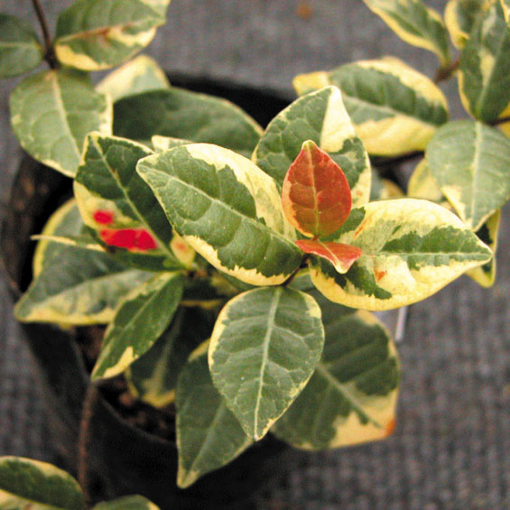 覆輪中葉テイカカズラ 【407-008】 キョウチクトウ 2019.10.26 丸葉覆輪の中葉品種。 開花期 5-6月 冬季 常緑 日当たり 日向 耐寒性 強 水やり 普通 施肥 春・秋に油粕肥料、生育時に有機液肥を2週間に1回程度 用土 基本培養土/山野草の土