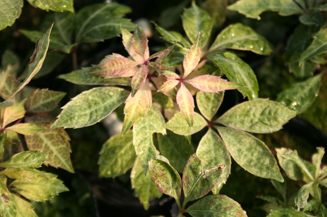 白散斑オランダツタ 【423-002】 ブドウ 2019.10.26 赤葉に白散斑の選抜品種。 開花期 6-8月 冬季 落葉 日当たり 明るい日陰 耐寒性 強 水やり 普通 施肥 春・秋に油粕肥料、生育時に有機液肥を2週間に1回程度 用土 基本培養土/山野草の土