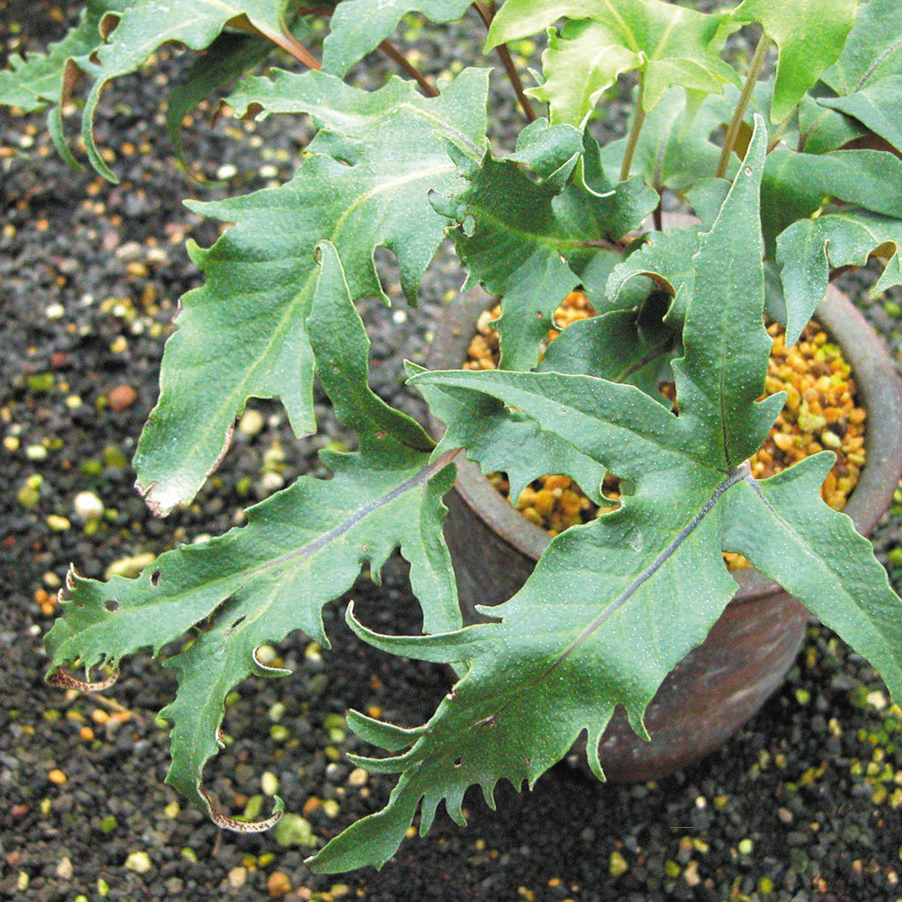 イワオモダカ「飛竜」 【602-002】 ウラボシ 2019.10.26 羽衣芸の上芸品で芸が進むと甲竜も乗る。 開花期 冬季 常緑 日当たり 日陰 耐寒性 強 水やり 普通 施肥 生育期に有機液肥を2週間に1回程度 用土 基本培養土/ミズゴケ