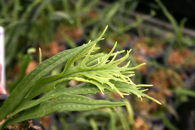葉先が次々と分れて細長い羽衣獅子芸となる。珍品。