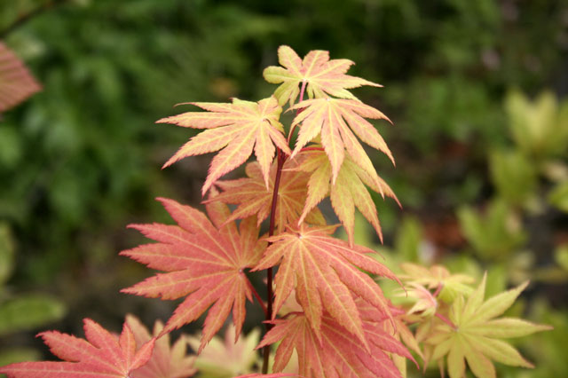 モミジ「オータム・ムーン」 【692-006】 カエデ 2019.10.26 赤・オレンジ・黄緑色が入り混じる表情豊かな品種。 開花期 4-6月 冬季 落葉 日当たり 日向 耐寒性 強 水やり 普通 施肥 春・秋に油粕肥料、生育時に有機液肥を2週間に1回程度 用土 基本培養土/山野草の土