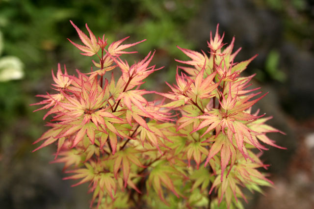 モミジ「黒姫」 【692-015】 カエデ 2019.10.26 赤軸オレンジ葉で赤覆輪のコンパクトな木姿。 開花期 4-6月 冬季 落葉 日当たり 日向 耐寒性 強 水やり 普通 施肥 春・秋に油粕肥料、生育時に有機液肥を2週間に1回程度 用土 基本培養土/山野草の土