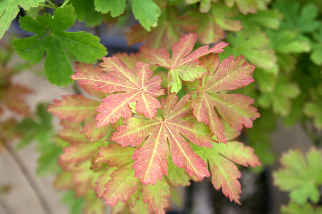 モミジ「向山谷錦」 【692-023】 カエデ 2019.10.26 葉先丸くやや紅を差す。 開花期 4-6月 冬季 落葉 日当たり 日向 耐寒性 強 水やり 普通 施肥 春・秋に油粕肥料、生育時に有機液肥を2週間に1回程度 用土 基本培養土/山野草の土