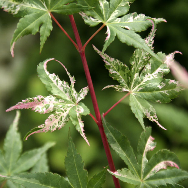 モミジ「寿」 【692-034】 カエデ 2019.10.26 白掃け散斑の選抜品種で斑の部分がピンクに染まる。 開花期 4-6月 冬季 落葉 日当たり 日向 耐寒性 強 水やり 普通 施肥 春・秋に油粕肥料、生育時に有機液肥を2週間に1回程度 用土 基本培養土/山野草の土