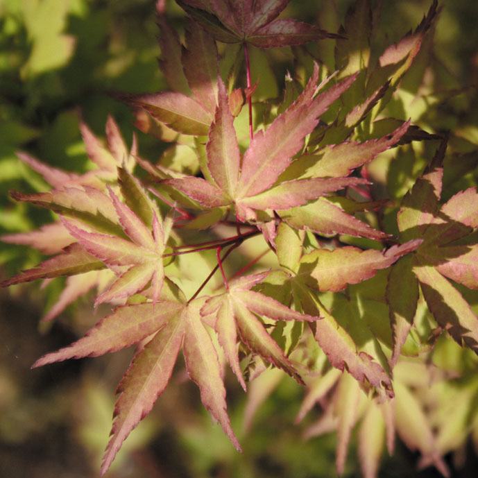 モミジ「霜降錦」 【692-058】 カエデ 2019.10.26 イロハ系の散覆輪斑入り品種。赤オレンジの若葉。 開花期 4-6月 冬季 落葉 日当たり 日向 耐寒性 強 水やり 普通 施肥 春・秋に油粕肥料、生育時に有機液肥を2週間に1回程度 用土 基本培養土/山野草の土