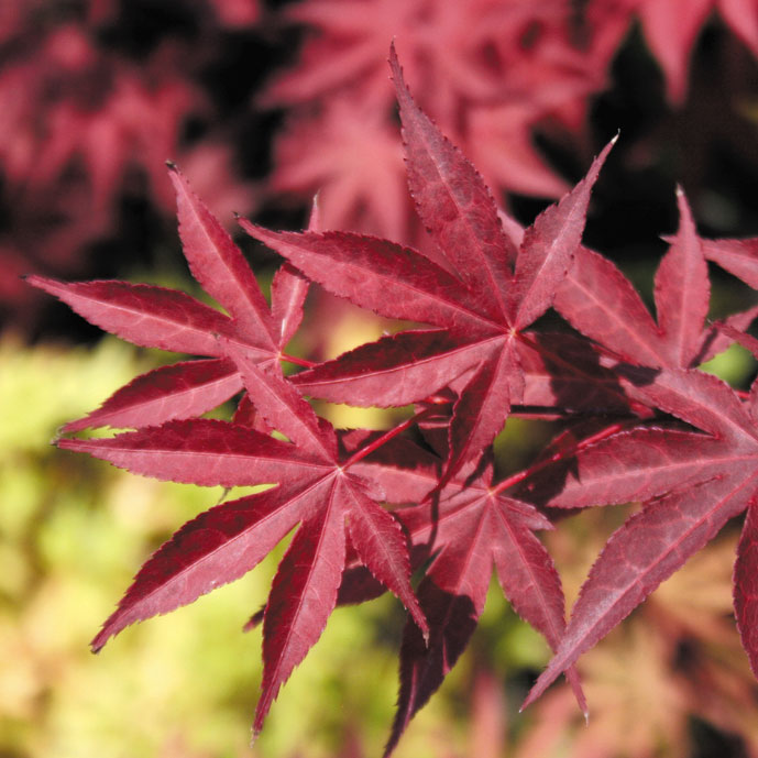 モミジ「ムロガワ」 【692-115】 カエデ 2019.10.26 濃赤紫に赤い葉脈が浮き出る。 開花期 4-6月 冬季 落葉 日当たり 日向 耐寒性 強 水やり 普通 施肥 春・秋に油粕肥料、生育時に有機液肥を2週間に1回程度 用土 基本培養土/山野草の土