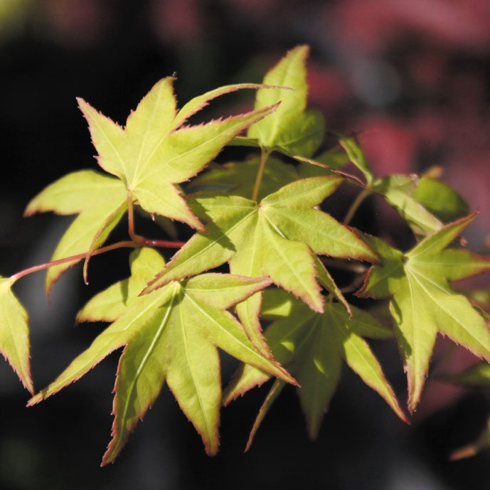 モミジ「三つ葉山」 【692-148】 カエデ 2019.10.26 オレンジの芽吹きが次第に爪紅に変化する。 開花期 4-6月 冬季 落葉 日当たり 日向 耐寒性 強 水やり 普通 施肥 春・秋に油粕肥料、生育時に有機液肥を2週間に1回程度 用土 基本培養土/山野草の土