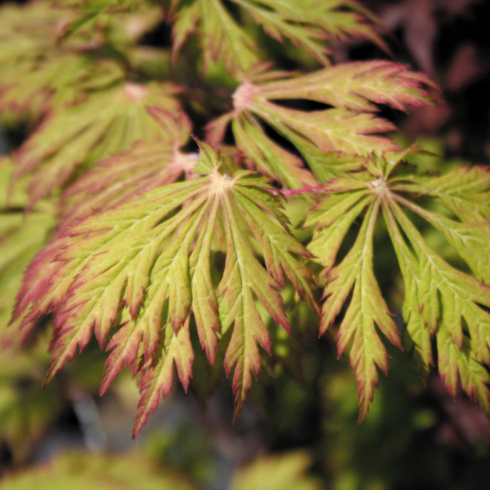 モミジ「舞孔雀」 【692-156】 カエデ 2019.10.26 細かな毛で覆われ切れ込みの深い面白い葉。 開花期 4-6月 冬季 落葉 日当たり 日向 耐寒性 強 水やり 普通 施肥 春・秋に油粕肥料、生育時に有機液肥を2週間に1回程度 用土 基本培養土/山野草の土