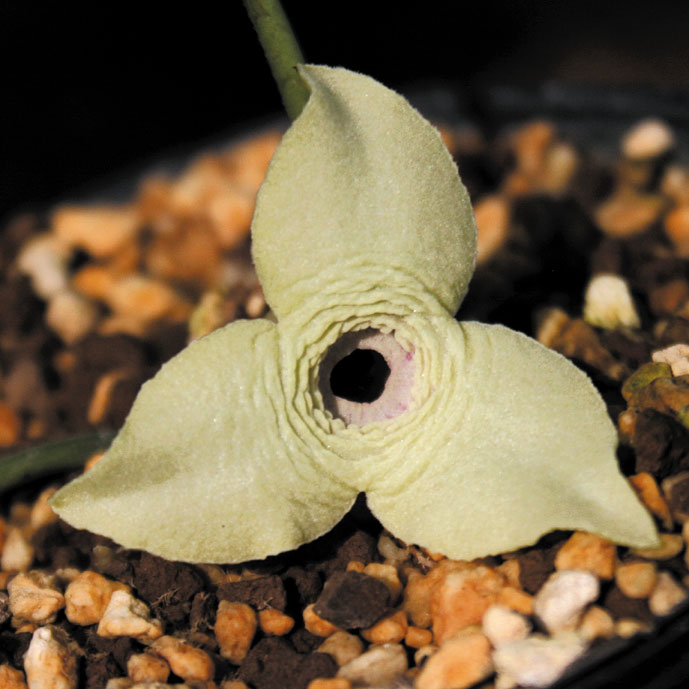 アケボノ青軸桃芯花 【703-004】 ウマノスズクサ 2019.10.26 青軸緑花で中心部は桃色。 開花期 4-6月 冬季 常緑 日当たり 日陰 耐寒性 強 水やり 普通 施肥 春・秋に油粕肥料、生育時に有機液肥を2週間に1回程度 用土 山野草の土/基本培養土