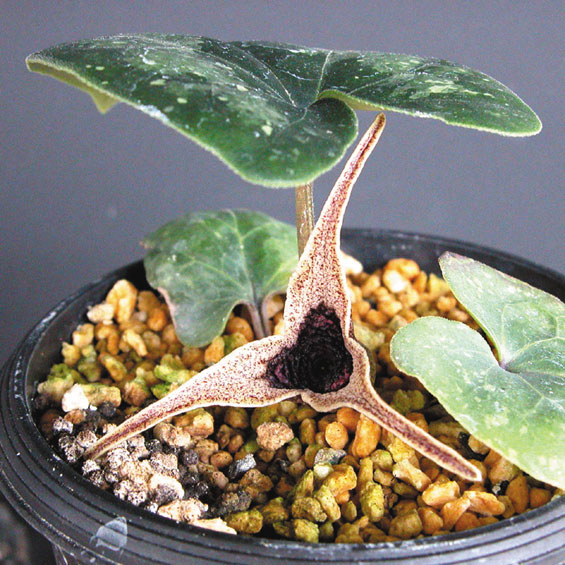 ホシザキ「伊予錦」 【737-002】 ウマノスズクサ 2019.10.26 白地合黒芯赤霧点花。非常に珍しいタイプの花で、人気が高い。数量限定。 開花期 4-6月 冬季 常緑 日当たり 日陰 耐寒性 強 水やり 普通 施肥 春・秋に油粕肥料、生育期に有機液肥を2週間に1回程度 用土 山野草の土/基本培養土