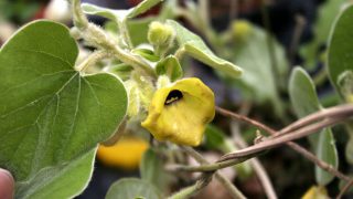ウマノスズクサ サルマ・ヘンリー 【009-002】 鮮やかで黄色い花弁が特徴の中国種。開花期 3-6月 冬季 日当たり 明るい日陰 耐寒性 強 水やり 普通 施肥 春・秋に油粕肥料、生育時に有機液肥を2週間に1回程度 用土 山野草の土/基本培養土 2019.10.26 ウマノスズクサ