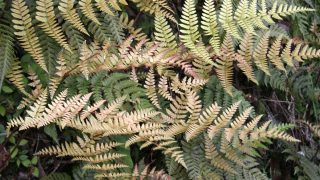 オシダ ベニシダ 【601-089】 新葉が赤く染まり、胞子も赤い常緑強健種。開花期 冬季 常緑 日当たり 日陰 耐寒性 中 水やり 普通 施肥 生育期に有機液肥を2週間に1回程度 用土 基本培養土/ミズゴケ 2019.10.26 オシダ