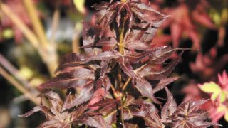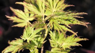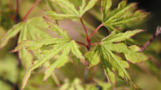 イロハ系の散覆輪斑入り品種。赤オレンジの若葉。開花期 4-6月 冬季 落葉 日当たり 日向 耐寒性 強 水やり 普通 施肥 春・秋に油粕肥料、生育時に有機液肥を2週間に1回程度 用土 基本培養土/山野草の土