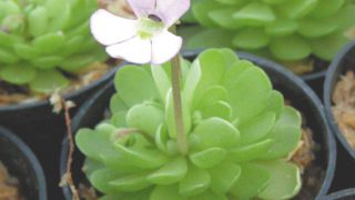 タヌキモ 姫足長ムシトリスミレ 【064-001】 極小型の草姿に薄桃色の可憐な花。食虫植物。開花期 5-7月 冬季 常緑 日当たり 明るい日陰 耐寒性 強 水やり 普通 施肥 春・秋に油粕肥料、生育時に有機液肥を2週間に1回程度 用土 山野草の土/基本培養土 2019.10.26 タヌキモ