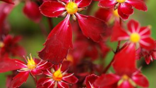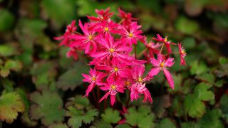 桃赤色の縁取りで中心部は白く抜ける底白咲き整形花。開花期 9-11月 冬季 落葉 日当たり 日陰 耐寒性 強 水やり 多め 施肥 春・秋に油粕肥料、生育時に有機液肥を2週間に1回程度 用土 山野草の土/基本培養土