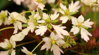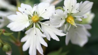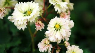 ピンクから白に色味が変化するフギレ八重咲品種。開花期 9-11月 冬季 落葉 日当たり 日陰 耐寒性 強 水やり 多め 施肥 春・秋に油粕肥料、生育時に有機液肥を2週間に1回程度 用土 山野草の土/基本培養土