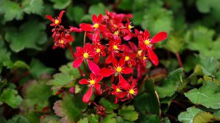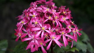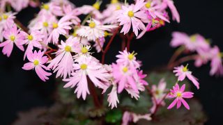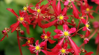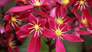 弁先が丸止めの濃赤花品種。開花期 9-11月 冬季 落葉 日当たり 日陰 耐寒性 強 水やり 多め 施肥 春・秋に油粕肥料、生育時に有機液肥を2週間に1回程度 用土 山野草の土/基本培養土