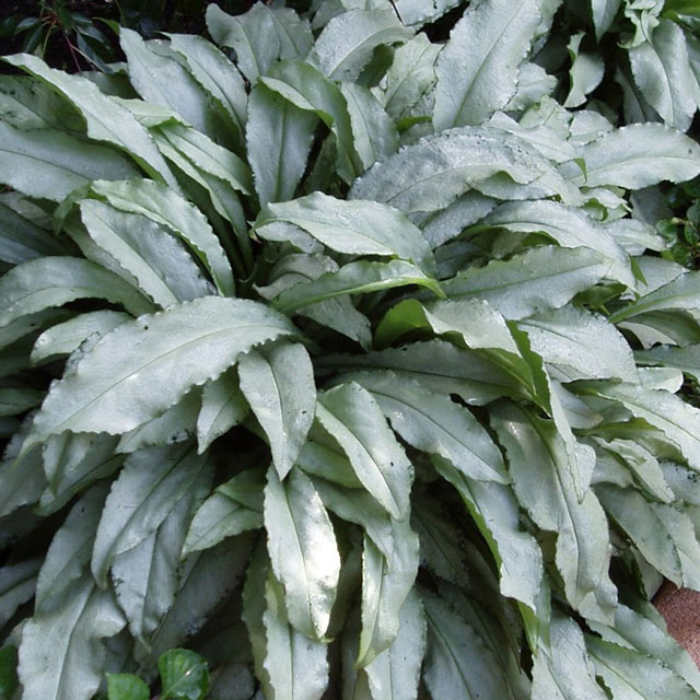 プルモナリア「マジェスティ」 【D4903501】 ムラサキ 2019.10.26 Pulmonaria Majesté 草丈25㎝、花は青く、葉は緑から銀色に変化する。 開花期 4-5月 冬季 常緑 日当たり 明るい日陰 耐寒性 強 水やり 普通 施肥 春・秋に油粕肥料、生育時に有機液肥を2週間に1回程度 用土 オリジナル園芸培養土
