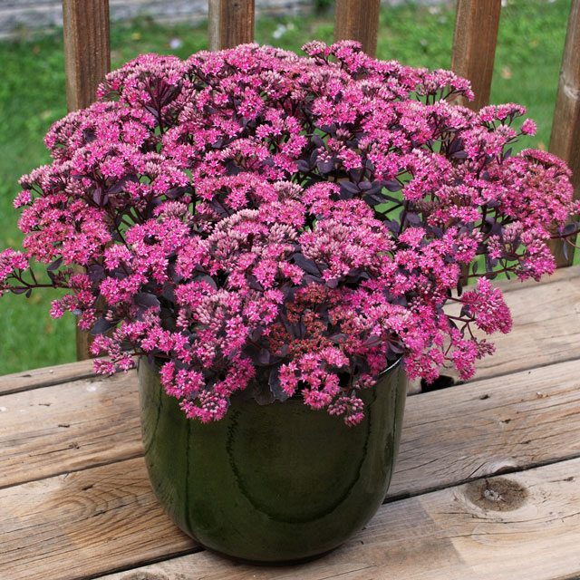 Sedum Dazzleberry 草丈15㎝、青灰色の葉に桃紫色の花を大きな塊でつける。