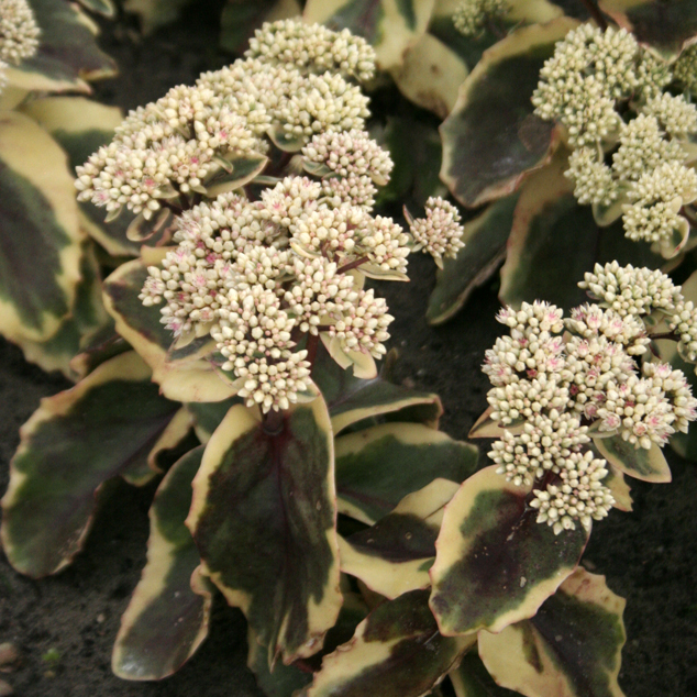 セダム「アイス・ラッフルズ」 【D4924401】 ベンケイソウ 2019.10.26 Sedum ‘Ice Ruffles’ 草丈50㎝、赤軸で濃緑にクリーム覆輪のフリル葉品種。 開花期 7-8月 冬季 落葉 日当たり 日向 耐寒性 強 水やり 普通 施肥 春・秋に油粕肥料、生育時に有機液肥を2週間に4回程度 用土 オリジナル園芸培養土