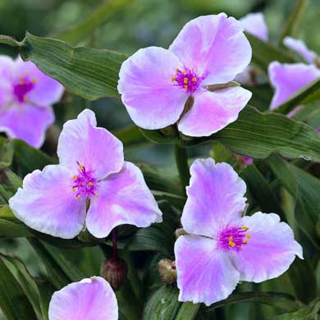 Tradescantia x Andersoniana ‘Pink Chablis’ 草丈45cm、フリルがかったピンクの花弁で弁先は白く抜ける。