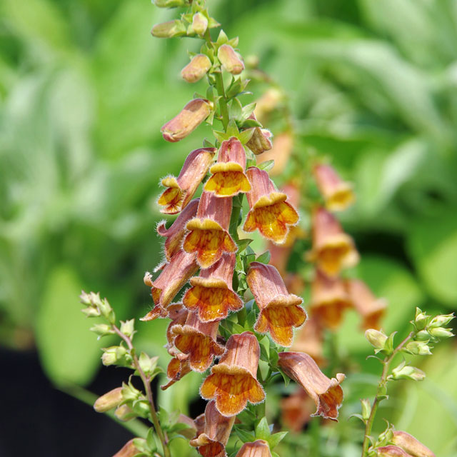 Digitalis obscura ‘Sunset’ 草丈50cm、細葉でオレンジ色の花色が特徴。