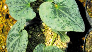 亀甲葉緑花。開花期 4-6月 冬季 常緑 日当たり 日陰 耐寒性 強 水やり 普通 施肥 春・秋に油粕肥料、生育期に有機液肥を2週間に1回程度 用土 山野草の土/基本培養土