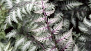 Athyrium 'Burgandy Lace' 草丈30cm、銅色とシルバーのコントラストが美しい耐寒性落葉種。開花期 冬季 落葉 日当たり 日陰 耐寒性 強 水やり 多め 施肥 春・秋に油粕肥料、生育時に有機液肥を2週間に1回程度 用土...