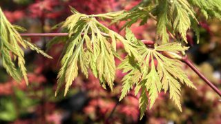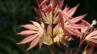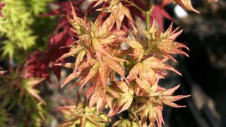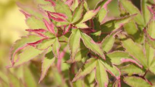 黄緑色に爪紅の美しい芽だしが特徴。秋はオレンジ。開花期 4-6月 冬季 落葉 日当たり 日向 耐寒性 強 水やり 普通 施肥 春・秋に油粕肥料、生育時に有機液肥を2週間に1回程度 用土 基本培養土/山野草の土