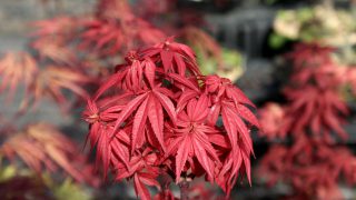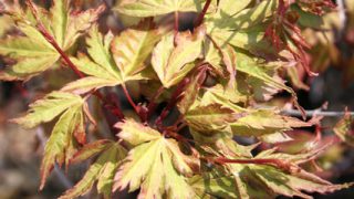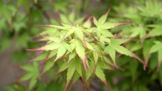赤みがかった新葉は夏は青く、秋は黄褐色に紅葉する。開花期 4-6月 冬季 落葉 日当たり 日向 耐寒性 強 水やり 普通 施肥 春・秋に油粕肥料、生育時に有機液肥を2週間に1回程度 用土 基本培養土/山野草の土