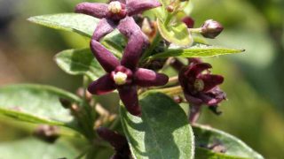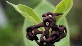 黒い星型の花。お茶花として人気。開花期 4-6月 冬季 落葉 日当たり 明るい日陰 耐寒性 強 水やり 普通 施肥 春・秋に油粕肥料、生育時に有機液肥を2週間に1回程度 用土 山野草の土/基本培養土