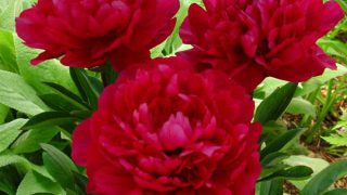 Paeonia x Lactifolia 'Sarah Bernhardt' 草丈90cm、早咲きの桃八重品種で切花にも向く。香りが良く育てやすい入門品種。強い日差しで葉焼けを起こすことがあり、温暖地では西日を避けて栽培する。ラクティフォリ...