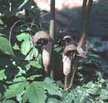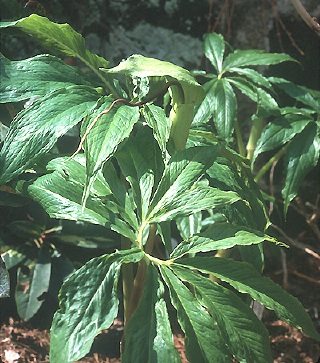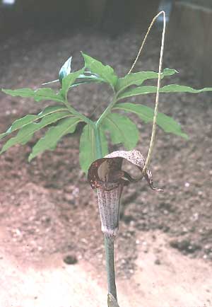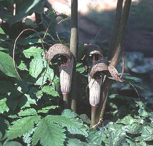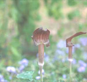 The flowrers are made up of a hooded tube and an elongated or rounded spadix inside the spathe. They can be beautiful or bizarre, but they always invite comment. Tall species are great "pop-up"plants among shade plants such as hostas or ararums. Different species can offer a succession of bloom from early spring to early summer. All can have showy heads of red fruit in fall.In the garden arisaemas require shade and well-drained soil that is not dry in spring and early summer. Plant corms about 5" deep in humusy or gravelly well-drained soil. A loose mulch can help with species of borderling hardiness.