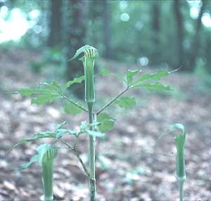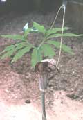 NEW!Arisaema maximowiczii *Sorry Sold Out* Number 25 50 100 500 1,000Zones 5-9 Fall 2003 US$350 US$675 N/A N/A N/AElegant Japanese species from the mountains of Kyushu. The tall stem bears 1 leaf with about 10 leaflets. The flowers are striped green or purple with white inside, with a threadlike extension on the spathe. Mid season, excellent garden plant.