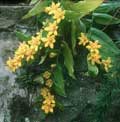 Japanese species with lax stems that drapes well over rocks, or cascades down a slope. Glossy, bright green leaves are pierced by the stem.