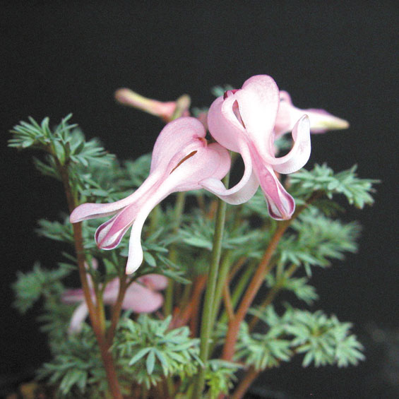 This famous Japanese alpine plant has lovely pink "bleeding heart" flowers. Requires perfect drainage in a scree or trough garden, but with moisture in the root zone, and bright light. Morning to mid-day sun is best in hot-summer climates; full sun in cool-summer climates.