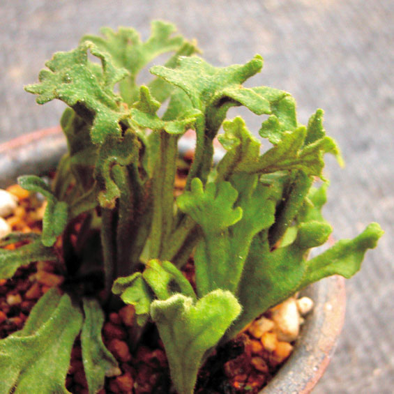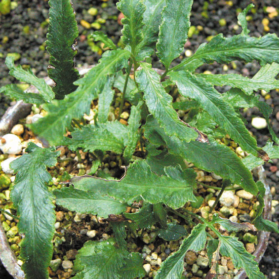 This rock-dwelling fern from China normally has long, undivided fronds. This Japanese selection has fronds about 6" long that are wildly divided, like a reindeer's antlers. Very rare and beautiful. Grow in orchid bark, well drained compost, or on a slab of bark. Reduce watering in winter.