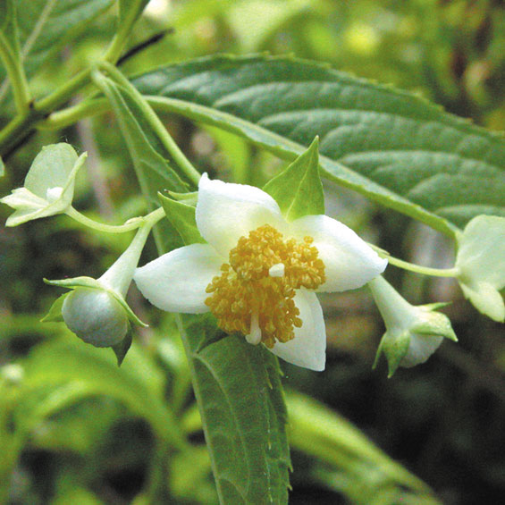 Charming woodland semi-shrub in the hydrangea family to about 18" tall. In late summer clusters of nodding white flowers appear to brighten the shade garden.