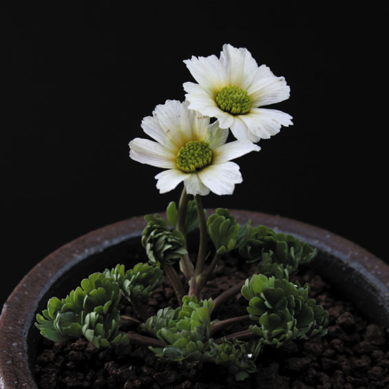 This is the dark-red flowered variety of a famous Japanese alpine plant, normally with pink flowers. Requires perfect drainage in a scree or trough garden, but with moisture in the root zone, and bright light. Morning to mid-day sun is best in hot-summer climates; full sun in cool-summer climates.