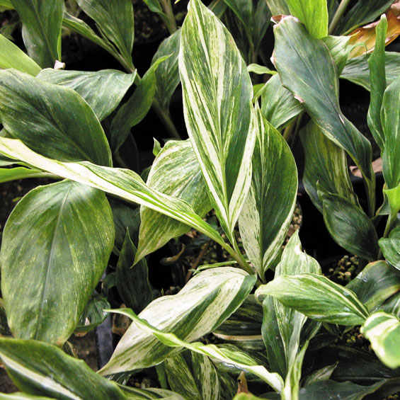 This is the newest selection of the hardy Japanese ginger. This distinctive variety has leaves that are marbled and splashed with silver gray and cream to white all over. It is vigorous and stable. This species is probably the hardiest of the true gingers