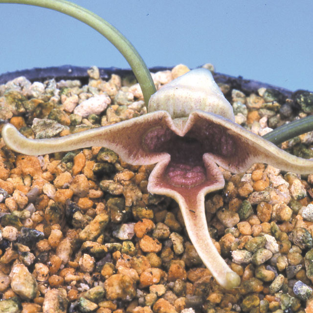 As above, with pale green flowers with a reddish throat.