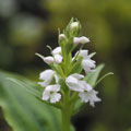 terrestrial orchid with spikes of white flowers in late spring. Likes