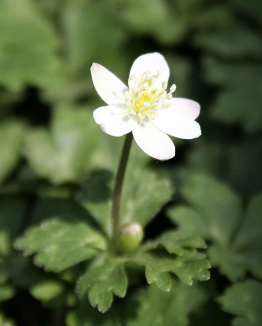 Spring blooming woodland wildflower with divided leaves and white flowers standing above the foliage. Easy to grow, makes nice colonies quickly. Can be used as a woodland groundcover.