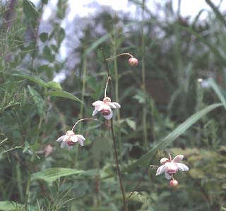 One of the aristocrats of the shade garden. Handsome foliage resembles Cimicifuga, topped in late summer by wiry stems bearing pendant pink flowers, to 3 feet tall. Hard to find.