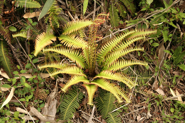 Evergreen hardy fern, new leaves has pinkish rainbow colors. @