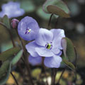 Famaous woodland rock garden plant from Korea, long cultivated in Japan. Easy in light shade in gritty or gravelly soil where it will form large clumps. Pretty up-facing light blue flowers in early spring are followed by attractive two-lobed leaves. @